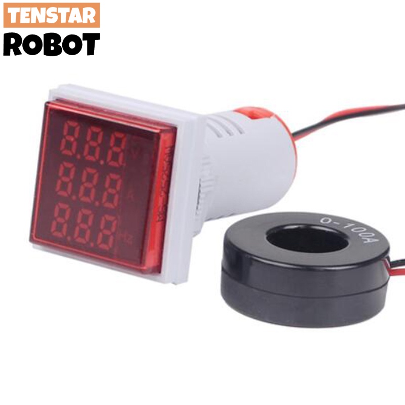 Voltímetro Digital 3 Em 1 22mm Amperímetro 60-500V 0-100A Hz Indicador De Frequência Do Medidor De Corrente AC Novo De Tensão Led20-75Hz