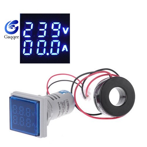 GAQQEE Voltímetro AC 50-500V 0-100A 22mm Mini Medidor De Corrente De Tensão Digital Indicador LED Duplo Amperímetro De Lâmpada Piloto