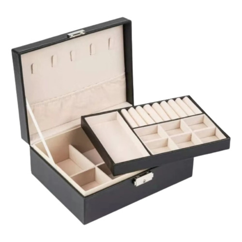 Porta Jóias Multi-Função Portátil de Couro/Porta Caixa Organizador de Duplos Compartimentos para Joias/Bijuterias, colar, anéis, brincos e colares