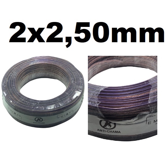 Fio Paralelo 2x2,5mm 100% Puro Cobre Bicolor Cristal 2,50mm Cabo Alto Falante Som Automotivo e Residencial
