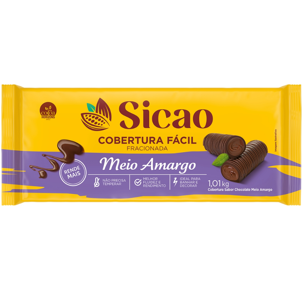 Cobertura Fácil Fracionada Chocolate Meio Amargo em Barra 1,01kg Sicao