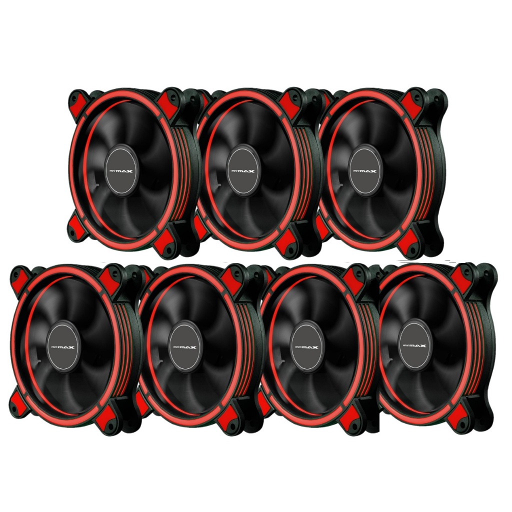 Kit 7 Fan Cooler Ventoinha Gamer Mymax Spectrum Ring com Led Vermelho p/ Gabinete 120mm 12cm