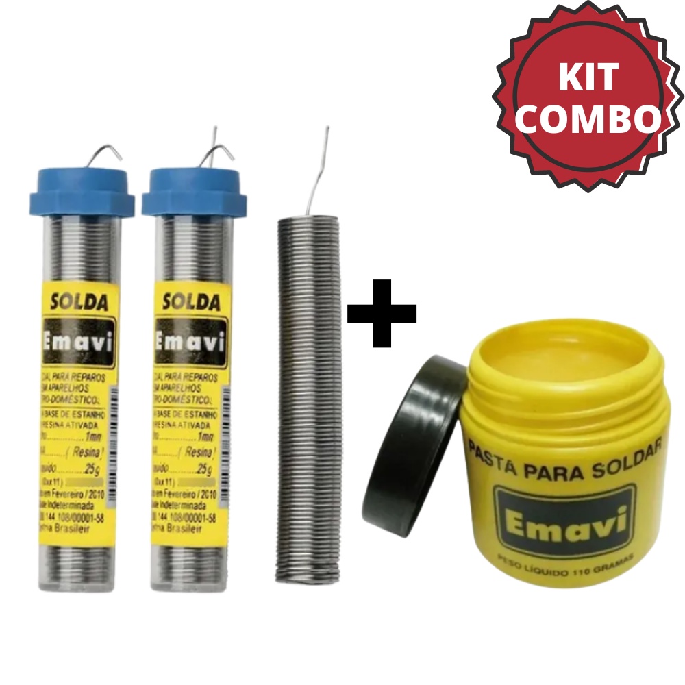 2 Tubo Estanho Solda 25g + 1 Pasta de Solda 110g Emavi