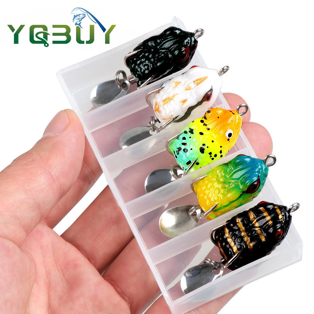 5 Pçs Conjunto 2.5cm/3g Sapo Macio Isca De Pesca Mini Macia Ganchos Duplos Superior Raio Água Artificial