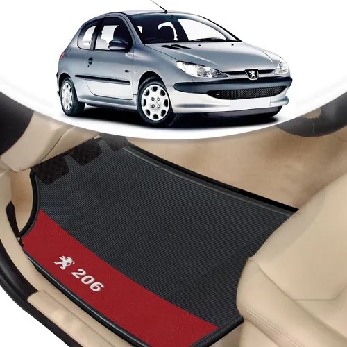 Tapete Borracha Automotivo Peugeot 206 Lado Vermelho 4 Pçs