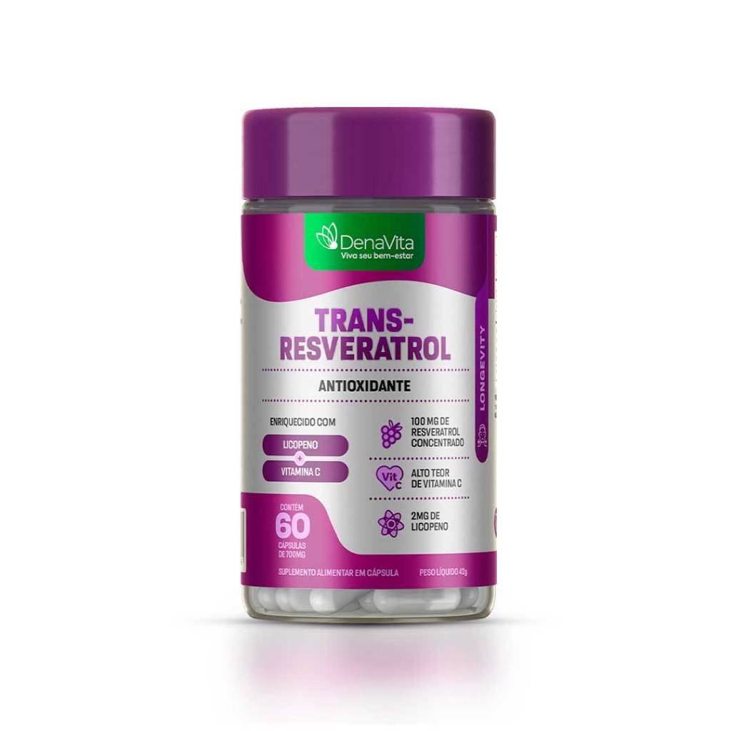 Trans Resveratrol Antioxidante, Vitamina C, Licopeno 3x1, Suplemento Alimentar - 60 Cápsulas - Denavita