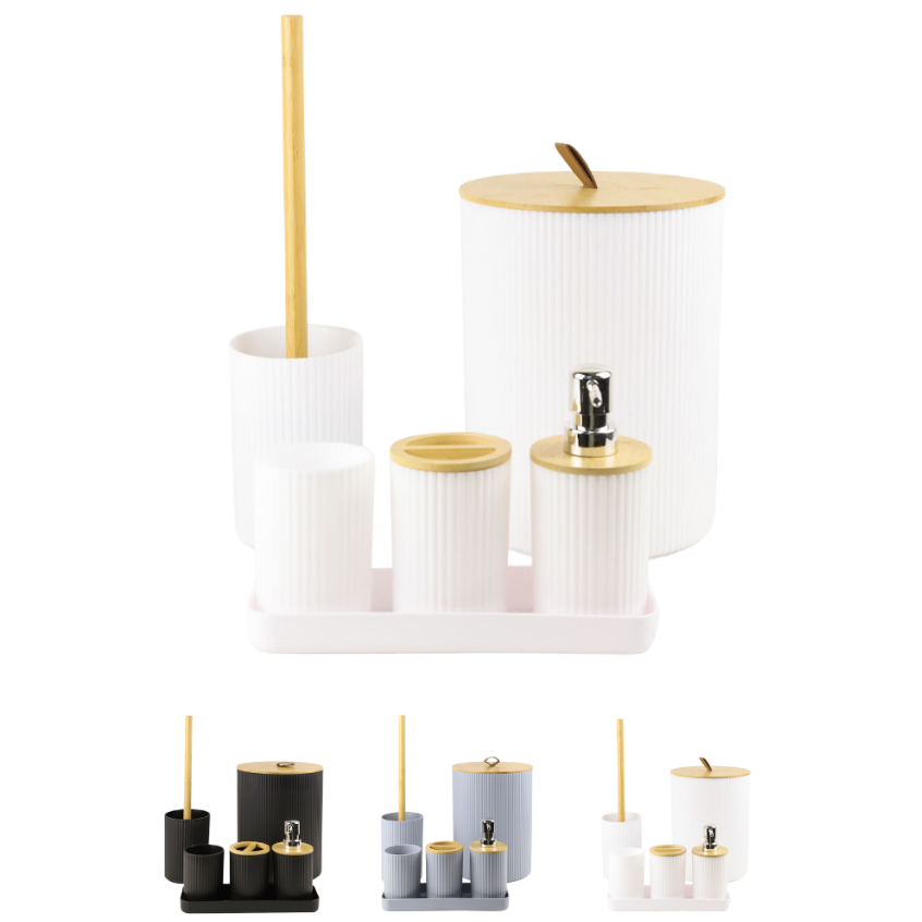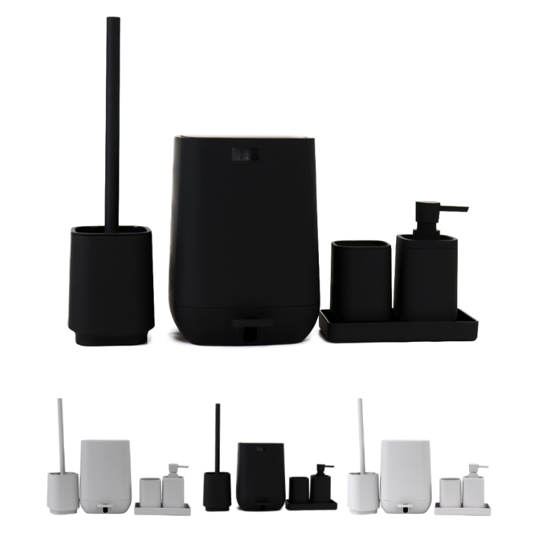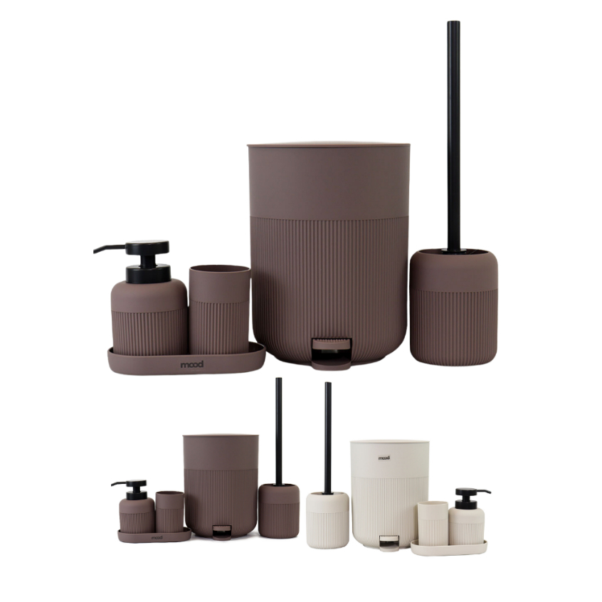 Kit pra Banheiro Mood Concept Conjuto Lavabo 5 peças Lixeira Escova Sanitária Bandeja de apoio Nobre