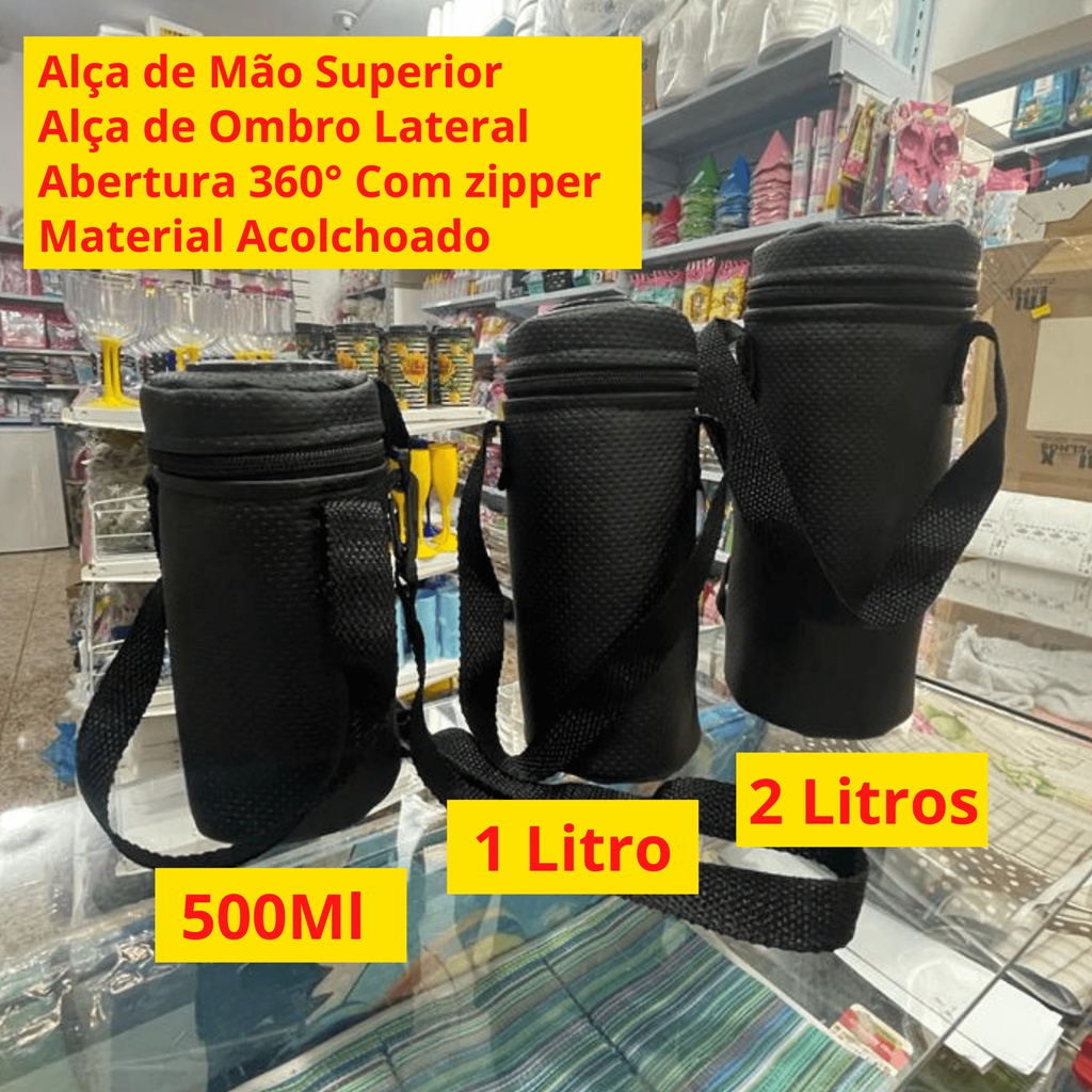Bolsa Térmica com Forro em Courvin para Garrafa, Porta Água - 750ml e 1 Litro - PEÇAS ÚNICAS
