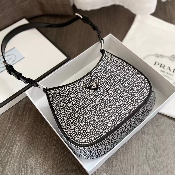096 P*RA*DA Bolsa para axilas com strass Um ombro portátil moda nobre bolsa feminina
