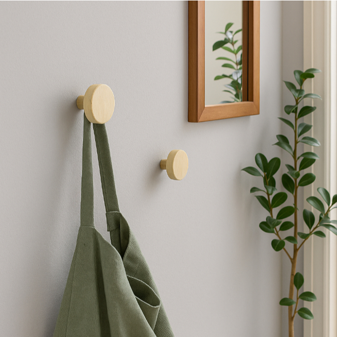 Cabideiro Redondo Gancho de Parede Madeira Natural Para Pendurar Roupas e Bolsas