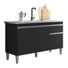 Balcão Cozinha Armário Gabinete para Pia de 120 cm Anitta 3 portas e 1 Gaveta Savana frente Preto