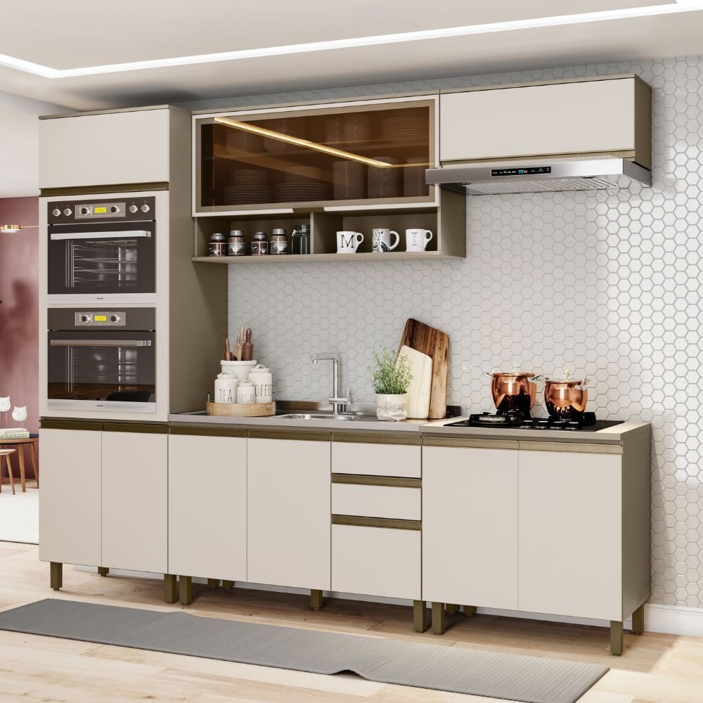 Cozinha Modulada Completa Isabelle 10 Peças com Torre Quente Para 2 fornos