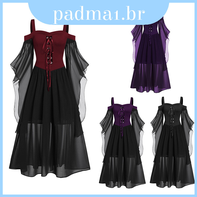 Vestido De Halloween Bruxa Cosplay Traje Gótico Medieval Carnaval De Ombro