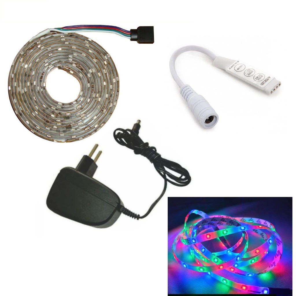 1 Metro De Fita Led Colorida + Controle Rgb + Fonte Bivolt - Modelo 3528 Colorida tira tem 3 cores Vermelho - verde e azul - não tem controle remoto