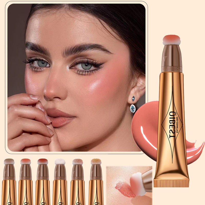 QIBEST Contorno Líquido Com Aplicador De Almofada Natural Shimmer Acabamento Hidratante Cremoso Macio Blush Para Bochechas Destaque