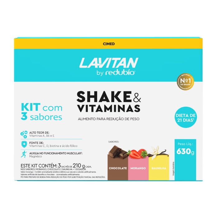 Lavitan by Redubío Shake & Vitaminas Kit C/3 Sabores Chocolate, Morango e Baunilha C/630g