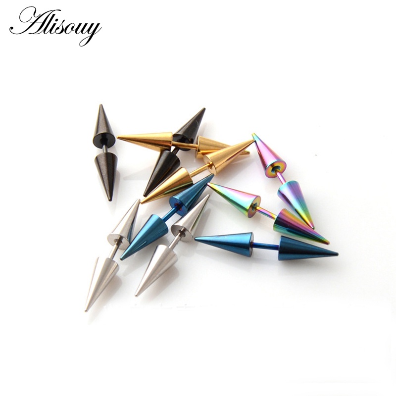 Alisouy 2PC Clássico Da Moda Do Punk Rock Rivet Spike Ponta Cone De Aço Inoxidável Mulheres Homens Orelha Stud Brincos Piercing Corpo Jóias