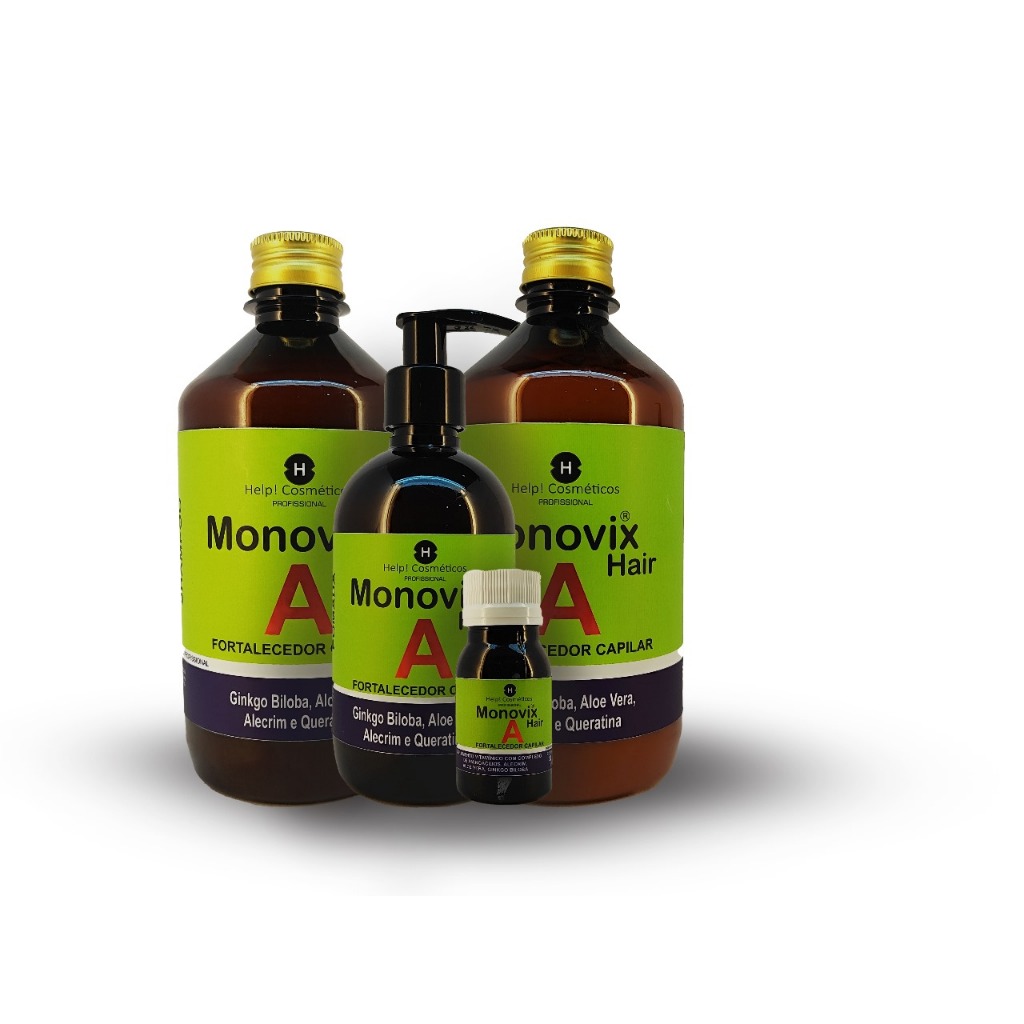 Monovix Hair A Crescimento Capilar ( Kit 4 itens) Crescimento Força e Tratamento - Original Help Cosméticos Autorizado pela Anvisa