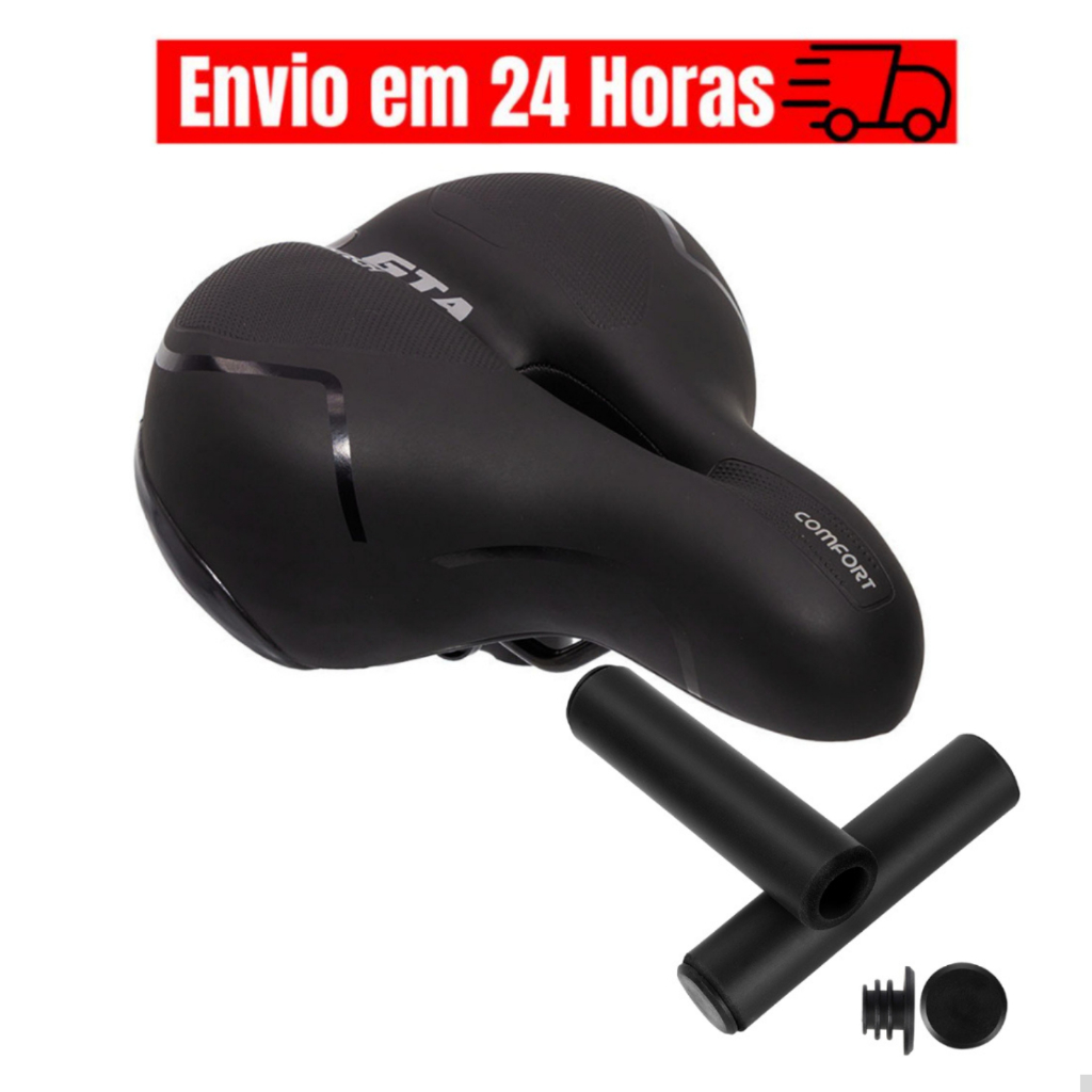 Banco Selim de Bicicleta 2 Molas Largo Macio Fita Refletiva Segurança Confortável Par Manopla Punho Bike MTB GTA Espuma Gel Silicone