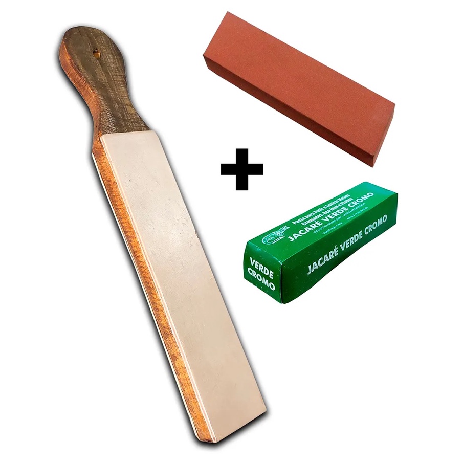 Kit Strop de couro + Pasta 400 g jacare + Pedra carborundum #400 Afiação de facas
