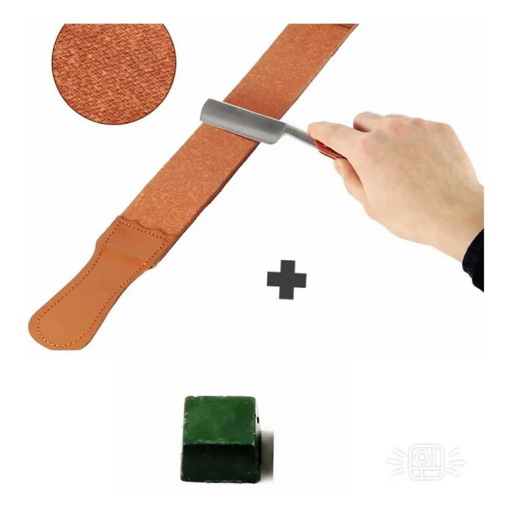 Kit Afiação De Faca Strop De Couro Duplo 15cm + Pasta Jacaré 145g