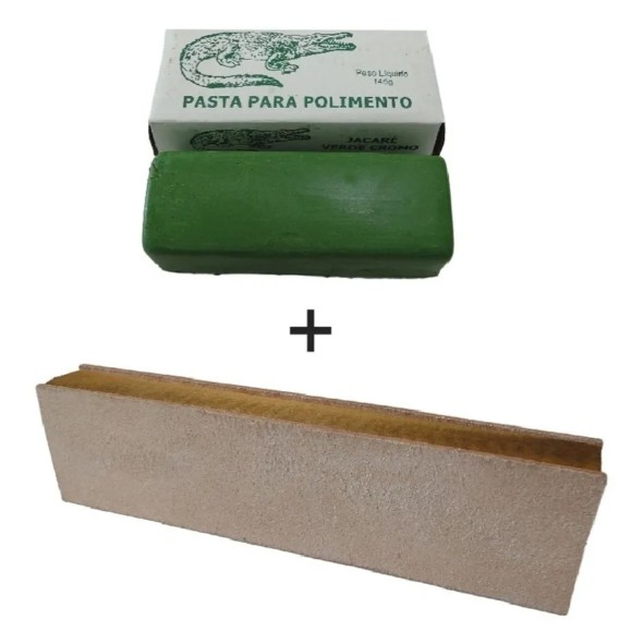 Strop De Couro + Pasta Verde Cromo Jacaré Afiar Facas