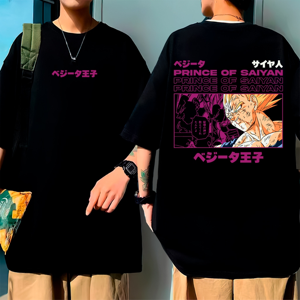 Camiseta Oversized Anime Vegeta Dragon Ball Goku Majin Camisa Estampada 100% Algodão