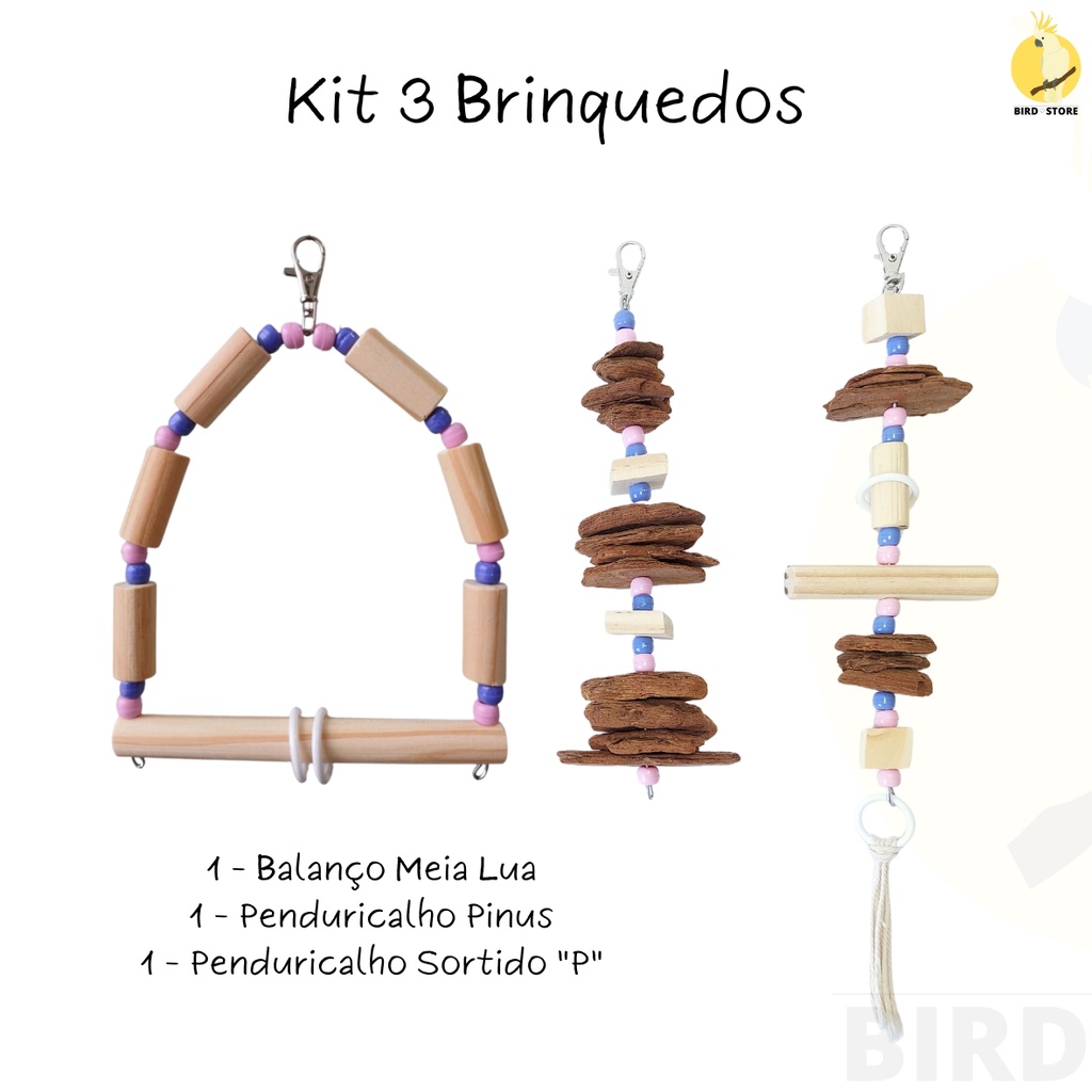 Brinquedo Calopsita, Kit com 3, agapornis, ring neck, aves, pássaros
