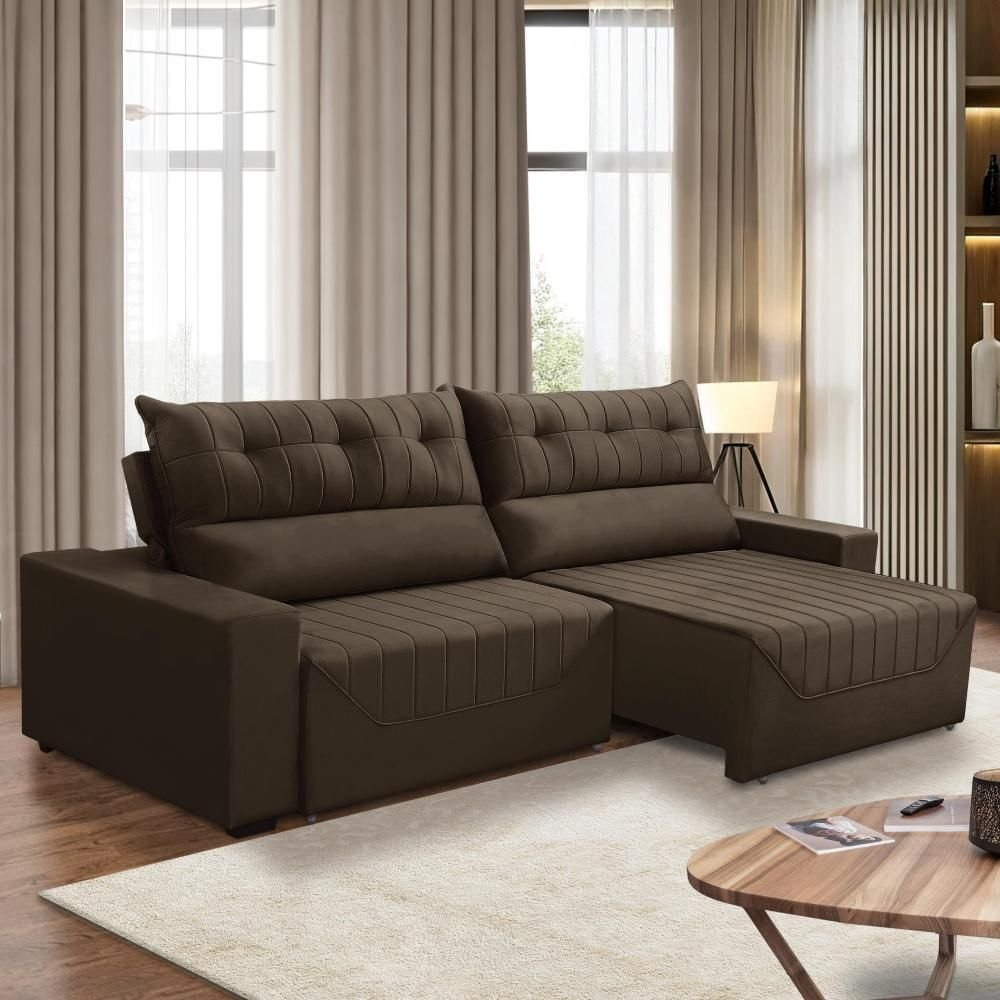 Sofá Retrátil e Reclinável 2,00m - 3 Lugares - veludo e pillow top - Espuma D33