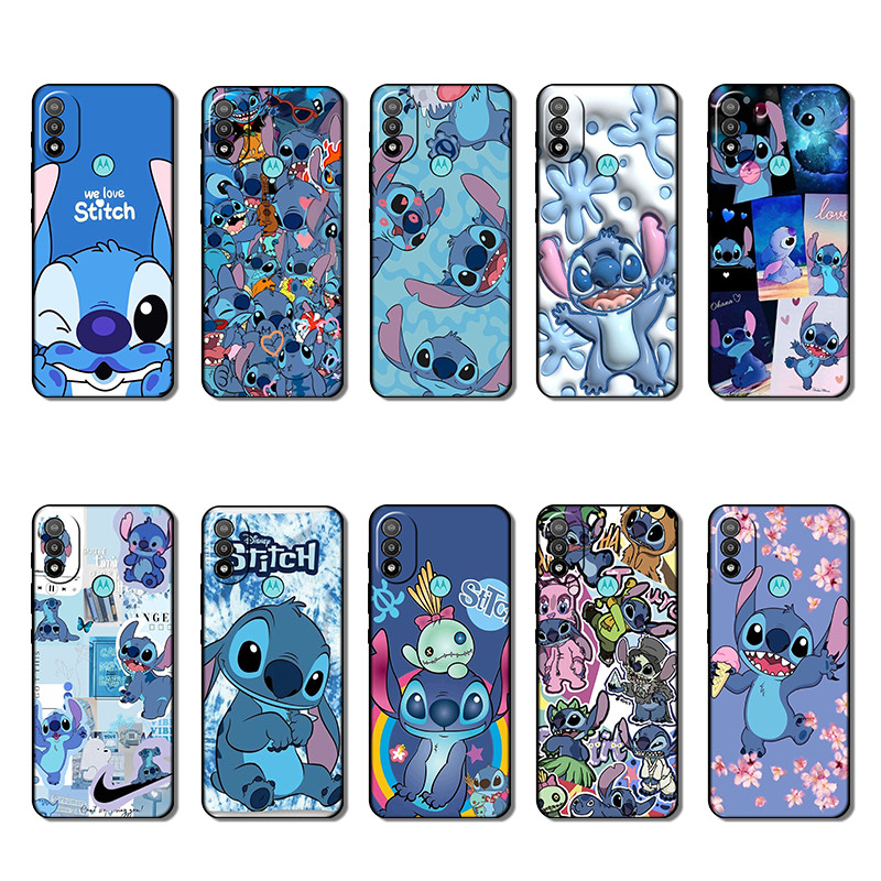 Capa De Telefone Preta Macia E Elegante Para Moto E20 FR29 Stitch Papel De Parede design anti-Queda