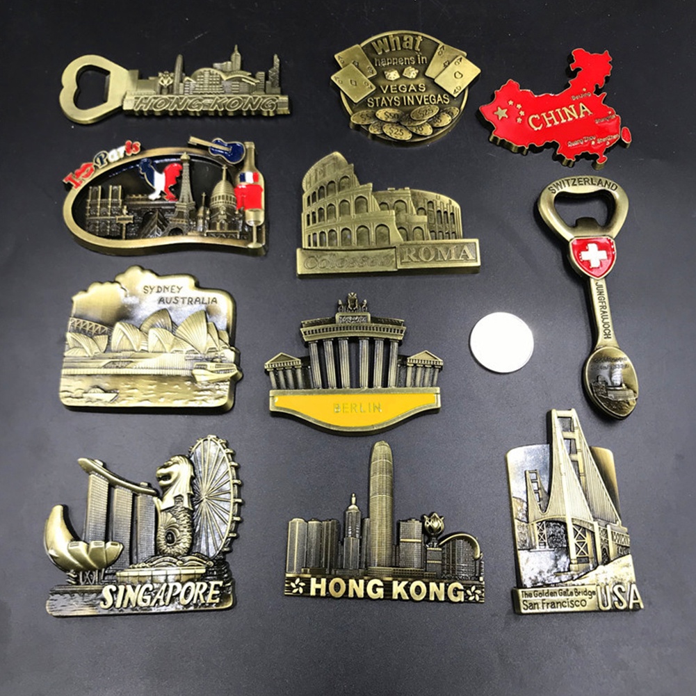 Lembrança País Ímãs De Geladeira Eua Hongkong França Paris Viagem Comemorativa Decoração Frigorífico Imã De Metal