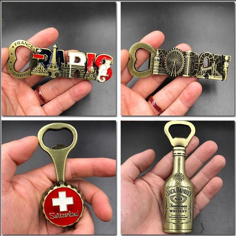 Ímã de geladeira Abridor de garrafas de Metal Adesivo de geladeira Suíça França Londres Paris JackDaniel Coleção de viagem Lembrança Ímã de alta qualidade Adesivo de geladeira europeu Lembrança