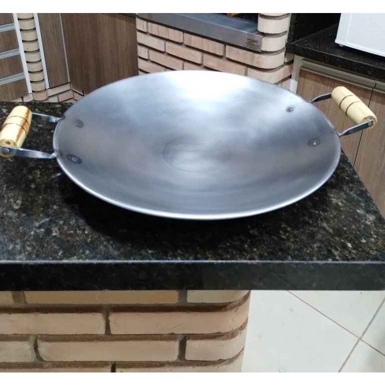 Disco Chapa de Arado Frigideira Grande Bifeira Aço Rústico Com Alça Reforçado