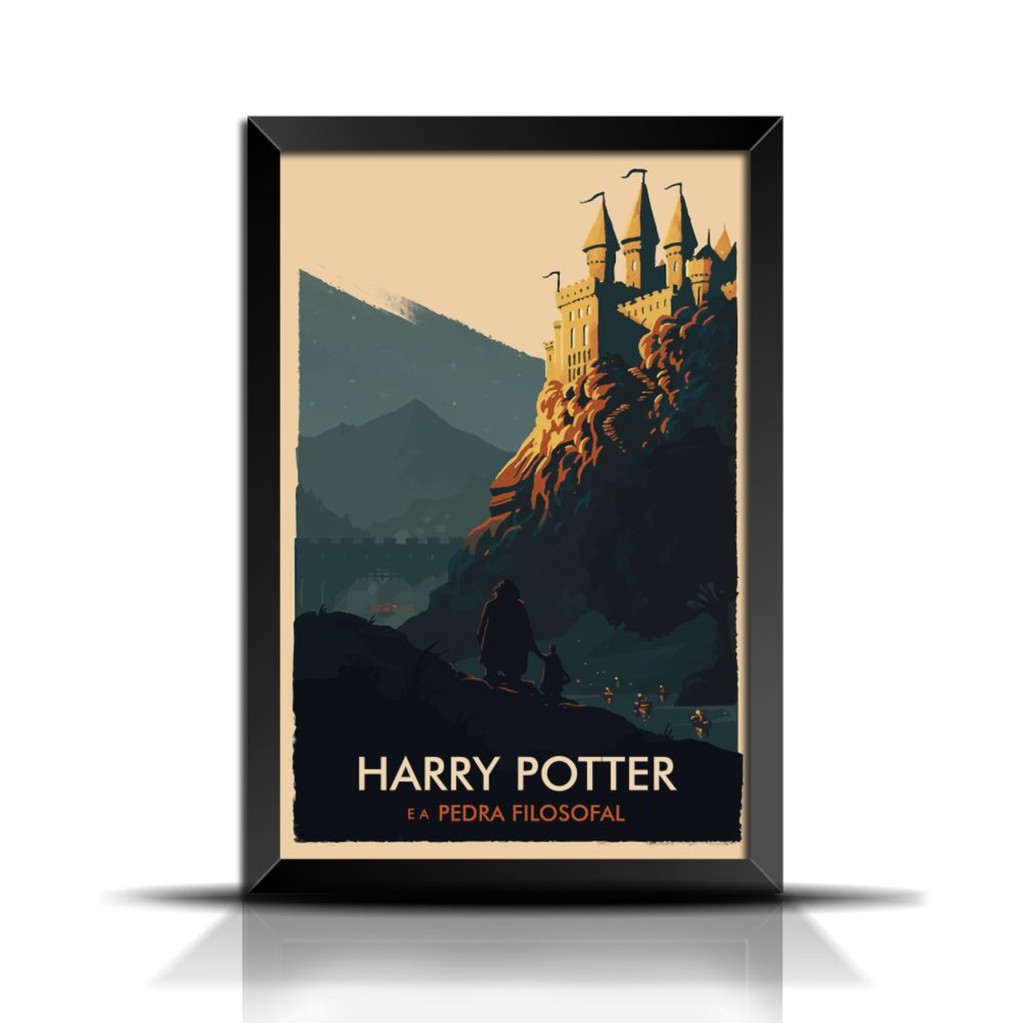 Quadro decorativo com moldura e vidro Harry Potter e a pedra filosofal Hogwarts grifinória filme pôster geek nerd