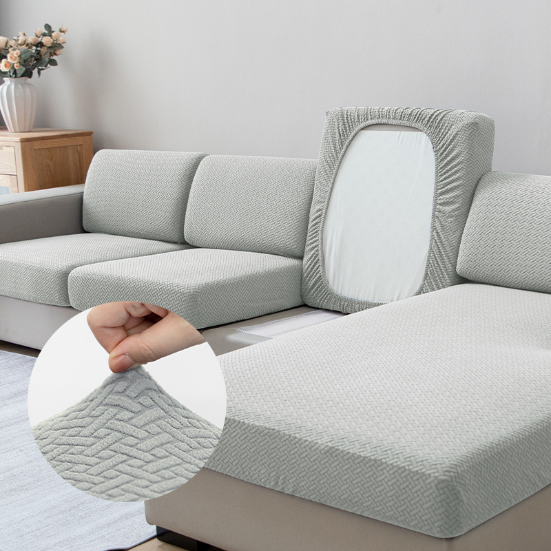 Capa De Sofá À Prova D'água Elástica De 1/2/3/4 Lugares Cor Lisa Jacquard Almofada Traseira Para Sala De Estar Decorar Milho Veludo Assento