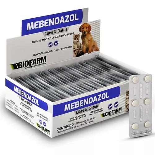 Vermifugo Mebendazol Caes E Gatos 6 Comprimidos Biofarm