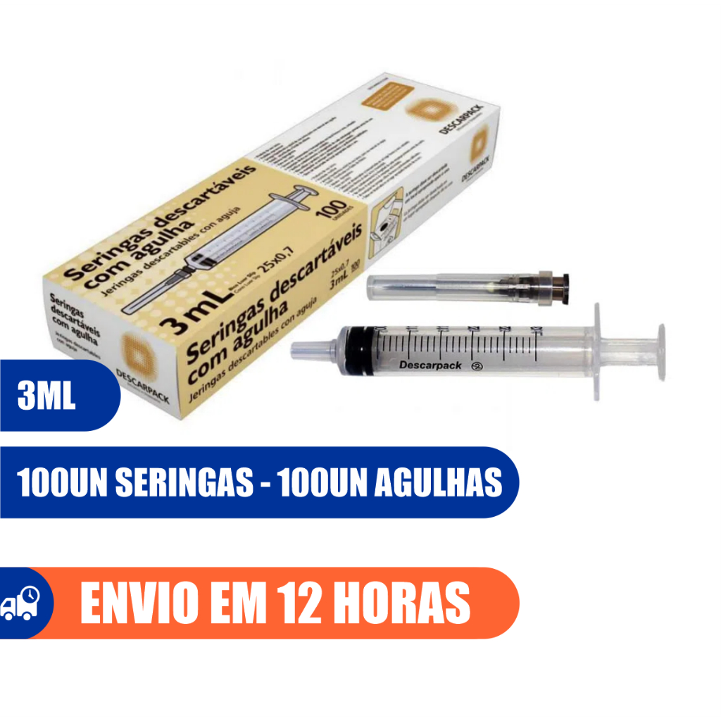 Seringa 3ml 25X0,7cm 100un Com Agulha Luer Slip Descarpack