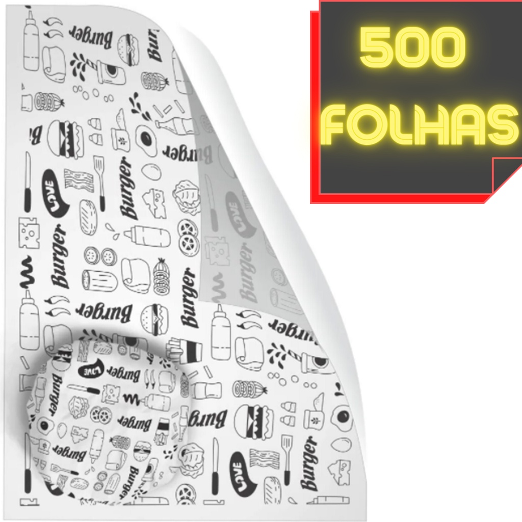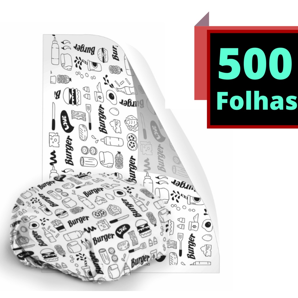 Papel Acoplado Térmico c/ 500 unidades Tamanho 30x48cm - Hamburguer Burger Lanche Embalagem para Lanche 1000 unidades 1500 unidades