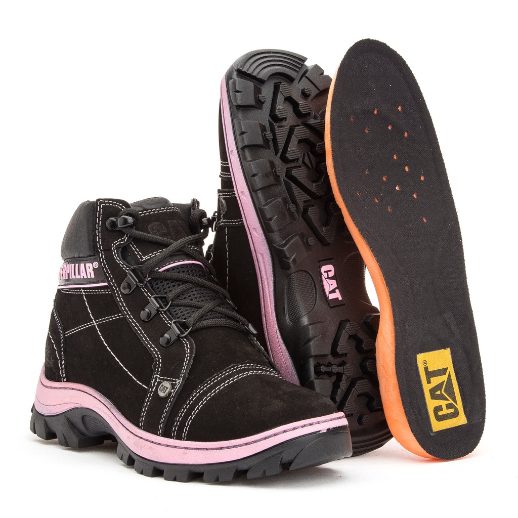Bota Original Caterpillar Feminina Confortável Couro palmilha a Gel Rosa Impermeável.