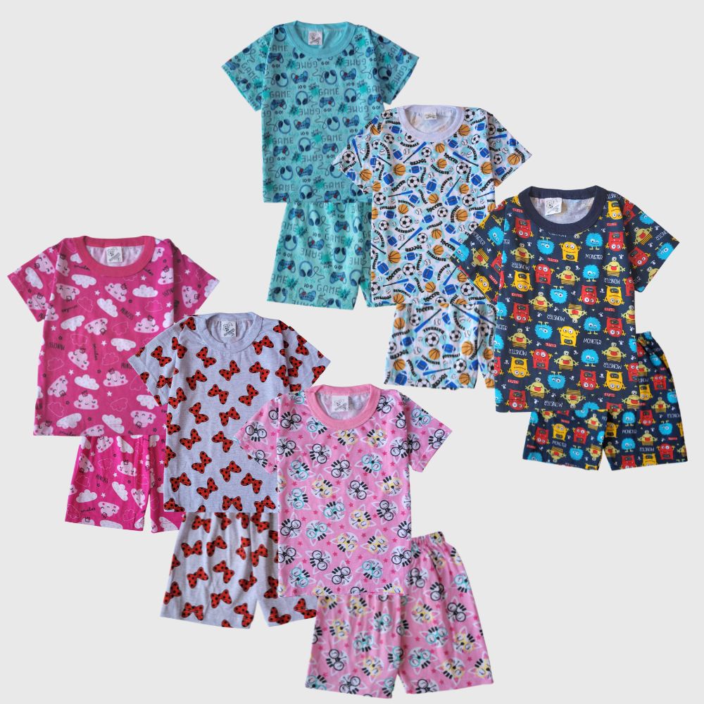 Kit 3 Conjuntos de Pijamas Manga Curta Infantil Menina Menino Estampado 100% Algodão Mafessoni