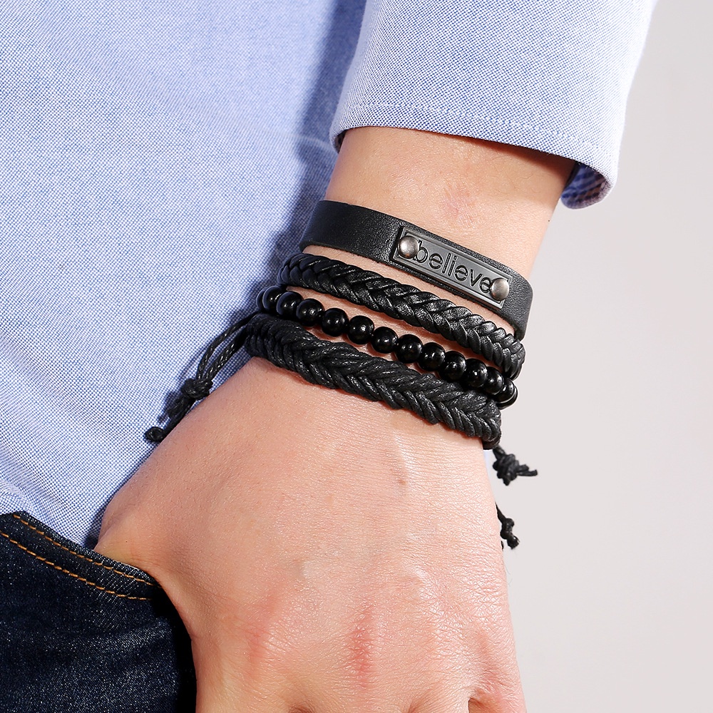 Kit com 3 pulseiras de couro e braceletes boêmios - Grande variedade de opções femininas e masculinas para presente