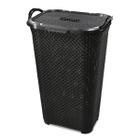 Cesto Organizador de Roupa Rattan Grande Com Tampa Basculada Preto 50 Litros Arqplast