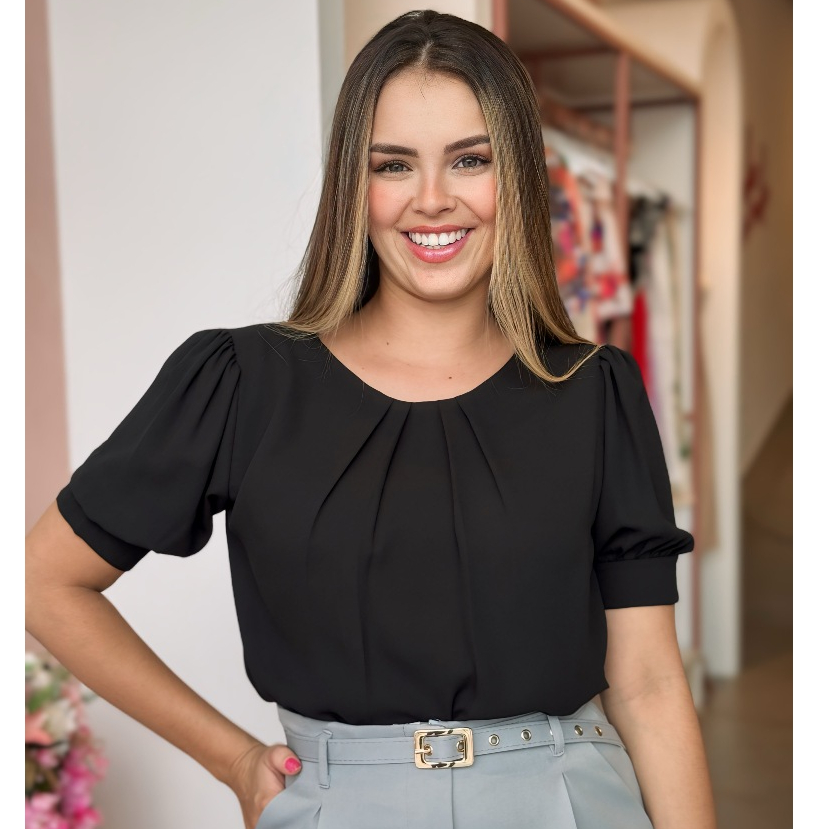 Blusa de alfaiataria P ao G1 Social Camisa Feminina em Crepe com Pregas Casual e Elegante Plus Size