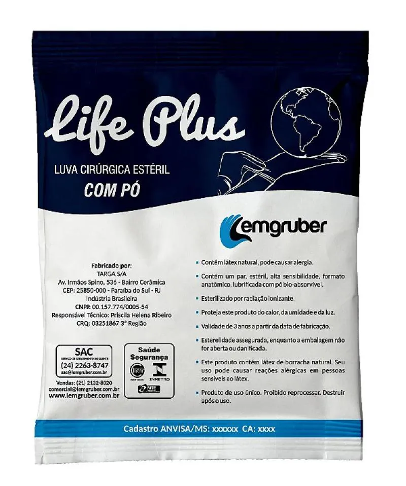 LUVA CIRURGICA LATEX ESTERIL COM Pó PAR LEMGRUBER TAM 7,5