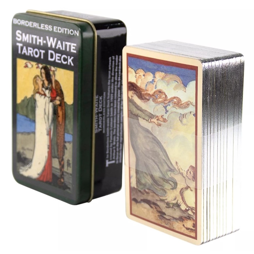 Smith Waite Tarot Deck Borderless Edition Em Lata Com Bordas Prateadas Tarô Rider Waite Baralho de Cartas de Oráculo
