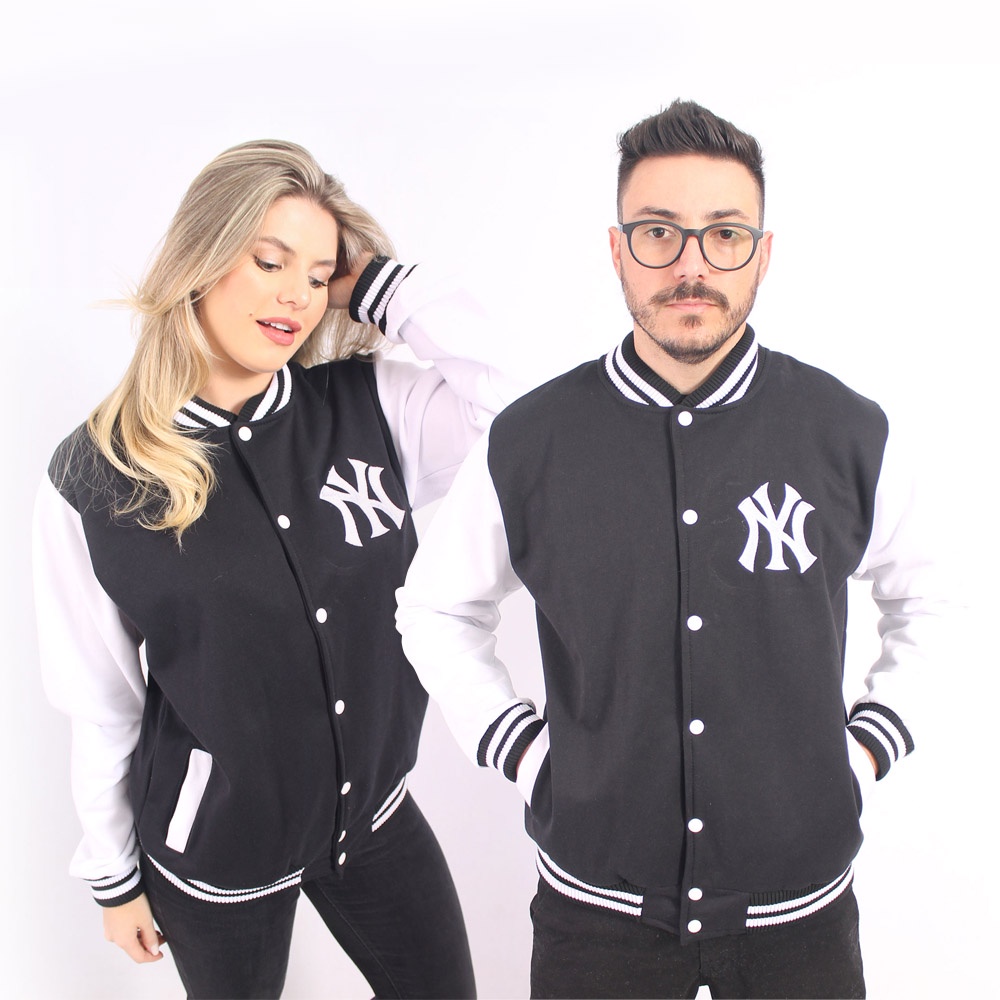 Jaqueta Blusa College New York NY Bordado Alto Relevo, Algodão - Unissex