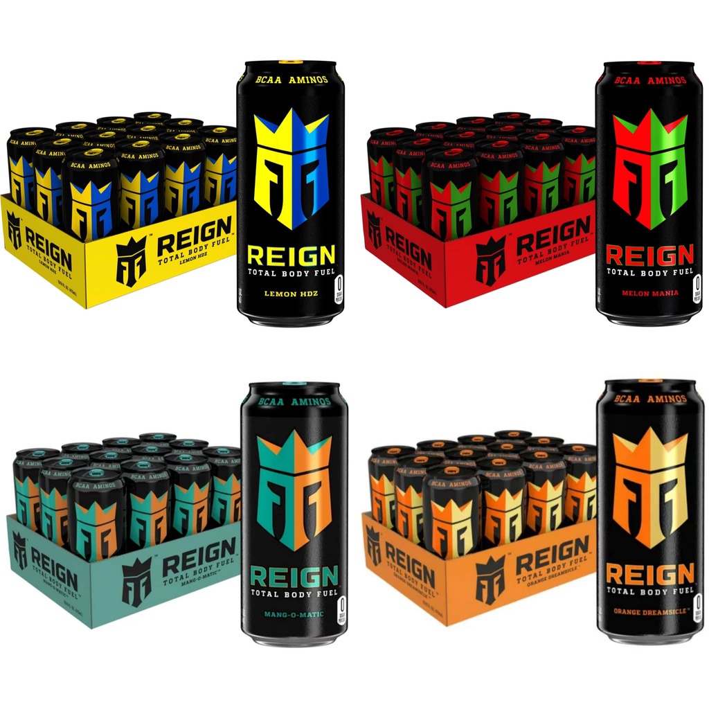 Kit c/12un Suplemento Energético Reign Mania BCAA Cafeína Natural Sem Açúcar e Corantes 473ml
