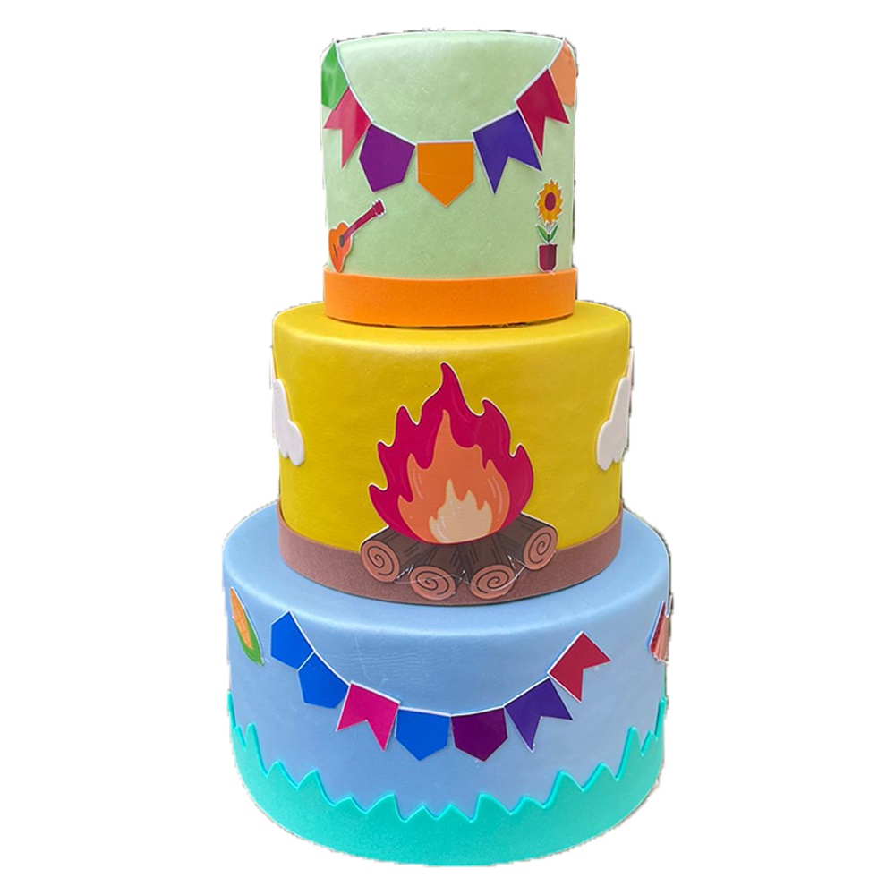 Bolo Fake Festa Junina Arraiá 3 Andares - Ideal Pegue Monte