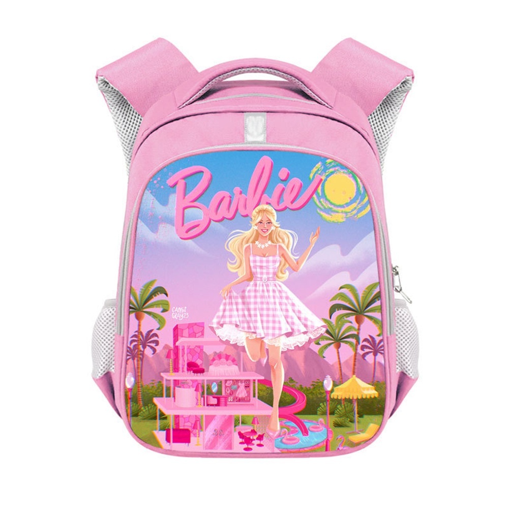 [Barbie Girls Pink Casual School Bag Mochila Refletiva De Tira Estudantil De Grande Capacidade Moda Para Viagens Escolares E Cuidados Com O Dia