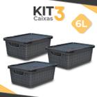 Kit 3 Caixa Organizadora 16 Litros Preta C/ Tampa Alça Cesto Telado Grande Armazenamento - Arqplast